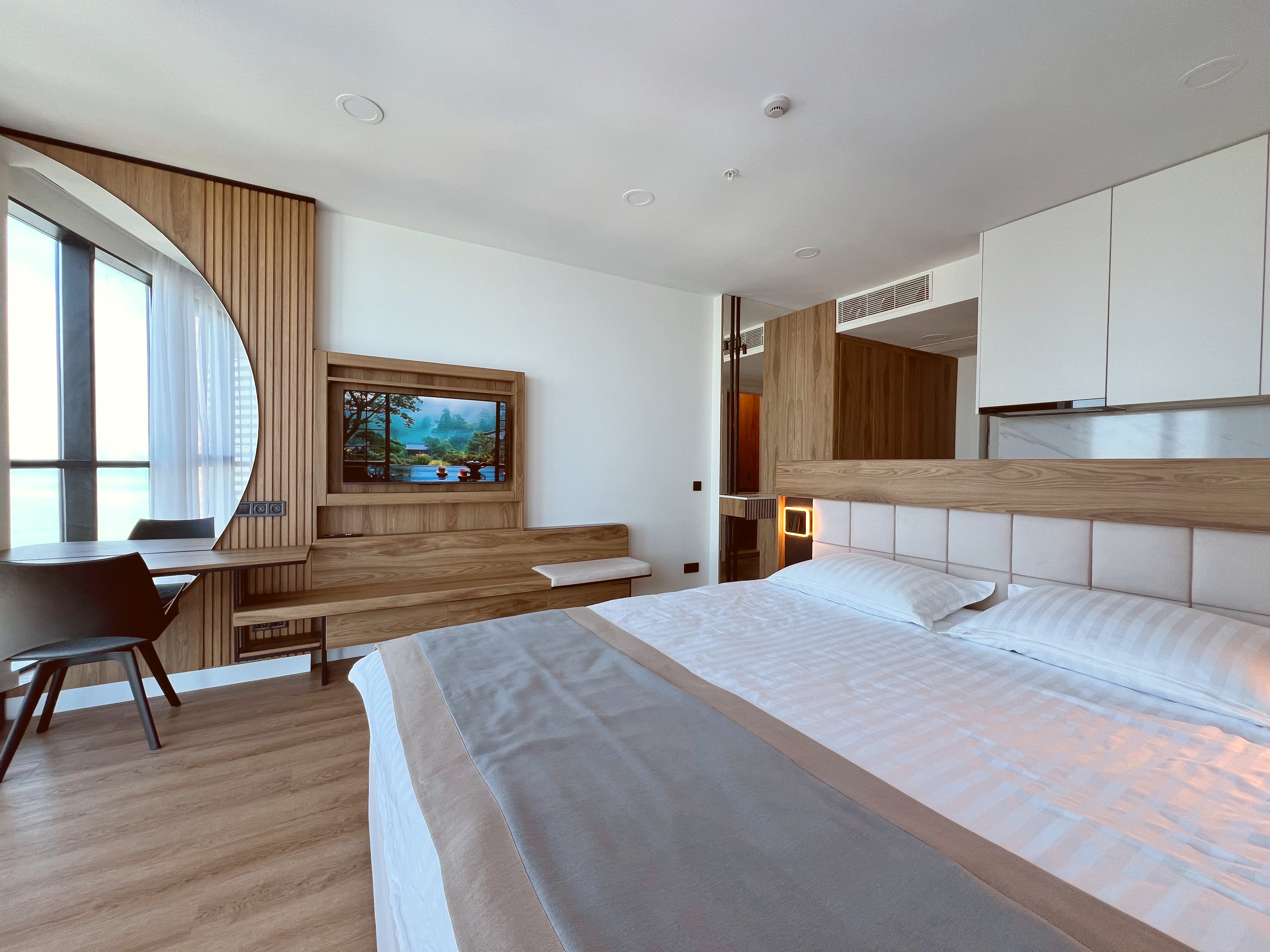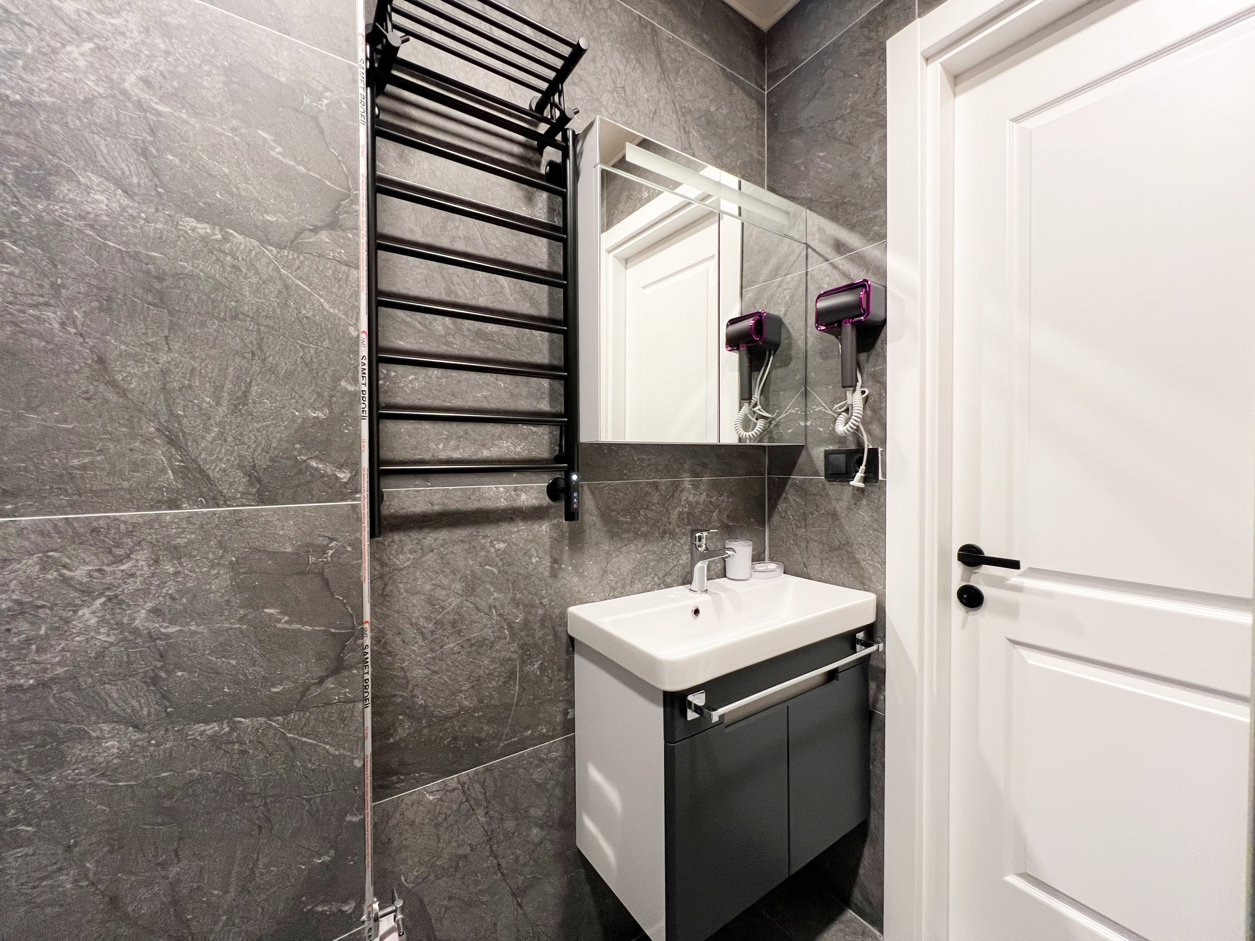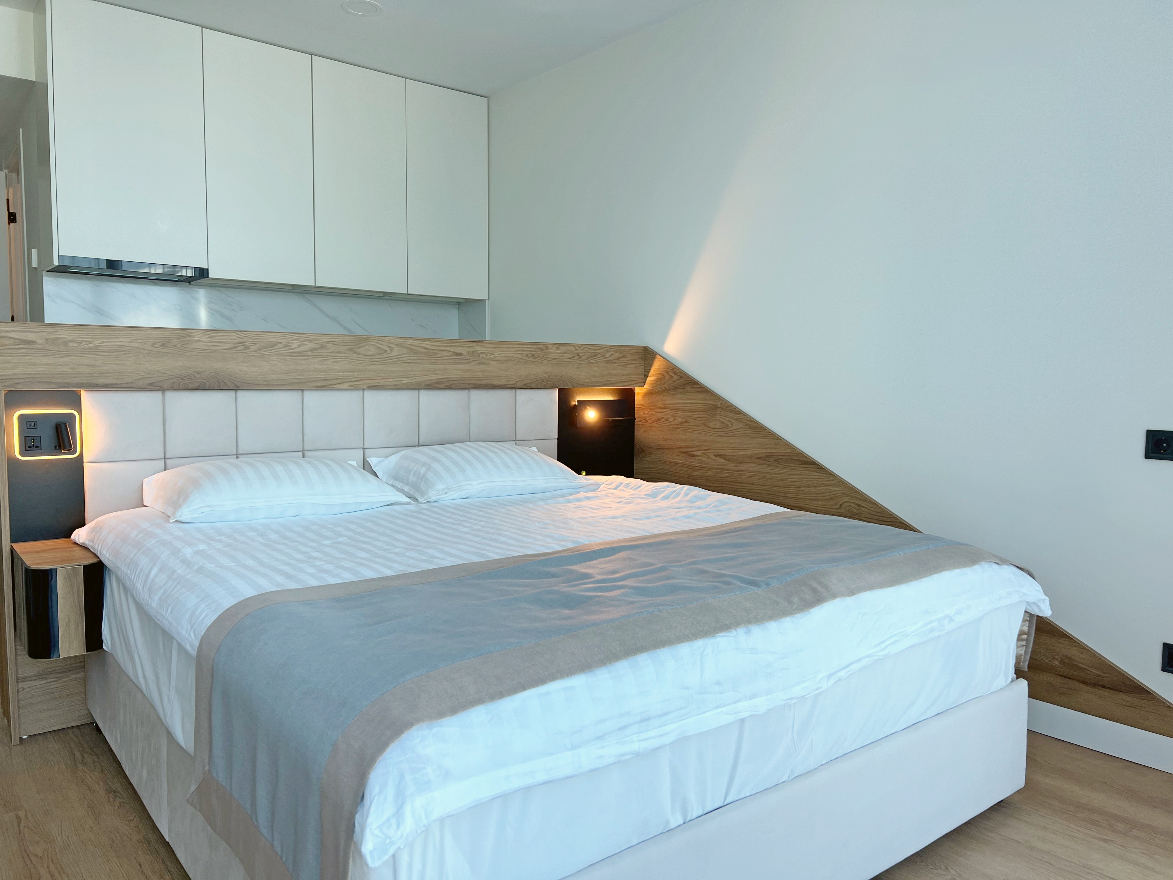 Просторная квартира с лаконичным и стильным дизайном, в котором комфортно разместятся два гостя. Стильная спальня с двуспальной кроватью сделает ваш отдых роскошным.