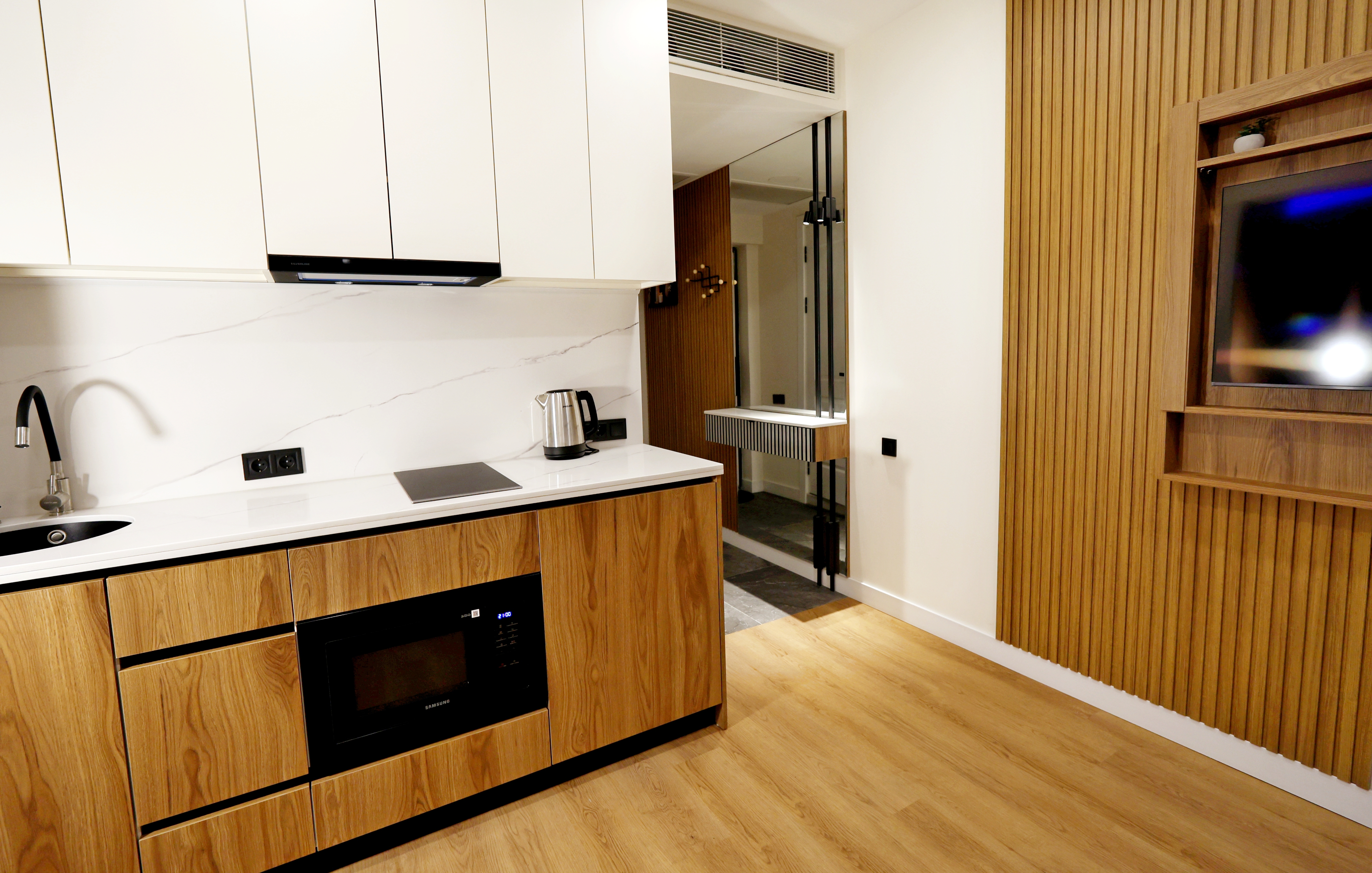 Если вы планируете отдохнуть в кругу семьи или заезжаете на длительный срок, мы предлагаем выбрать самый просторный дом площадью 200 кв.м. В нём предусмотрено всё для комфортного совместного проживания и отдыха.